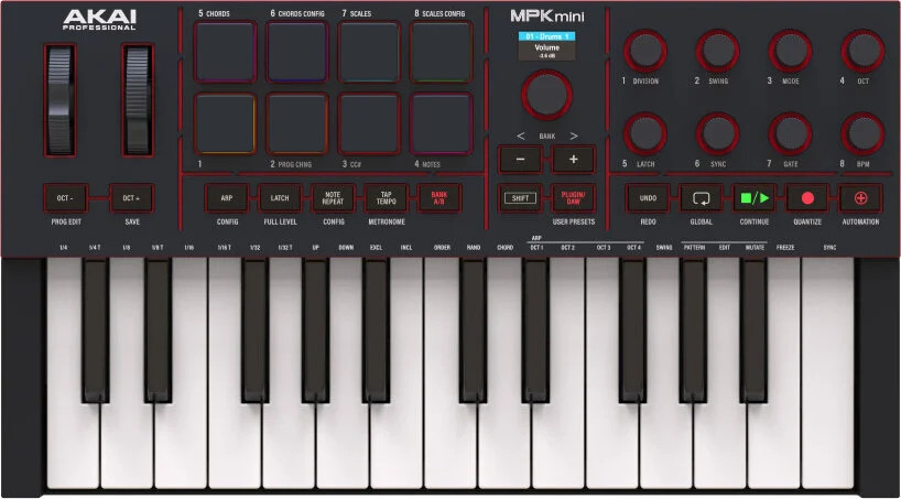 USB/MIDI vezérlő, 25 billentyű, 8 pad, joystick, sustain input és MIDI kimenet!